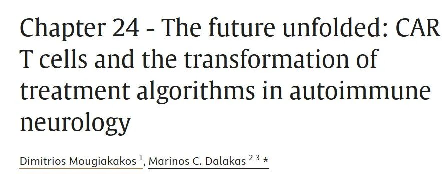 行业共识:同期发表于《Handbook of Clinical Neurology》的综述也指出,CAR-T细胞能够穿透血脑屏障,靶向维持“区室化炎症”的异位淋巴滤泡,为治疗难治性重症肌无力和僵人综合征提供了全新路径。